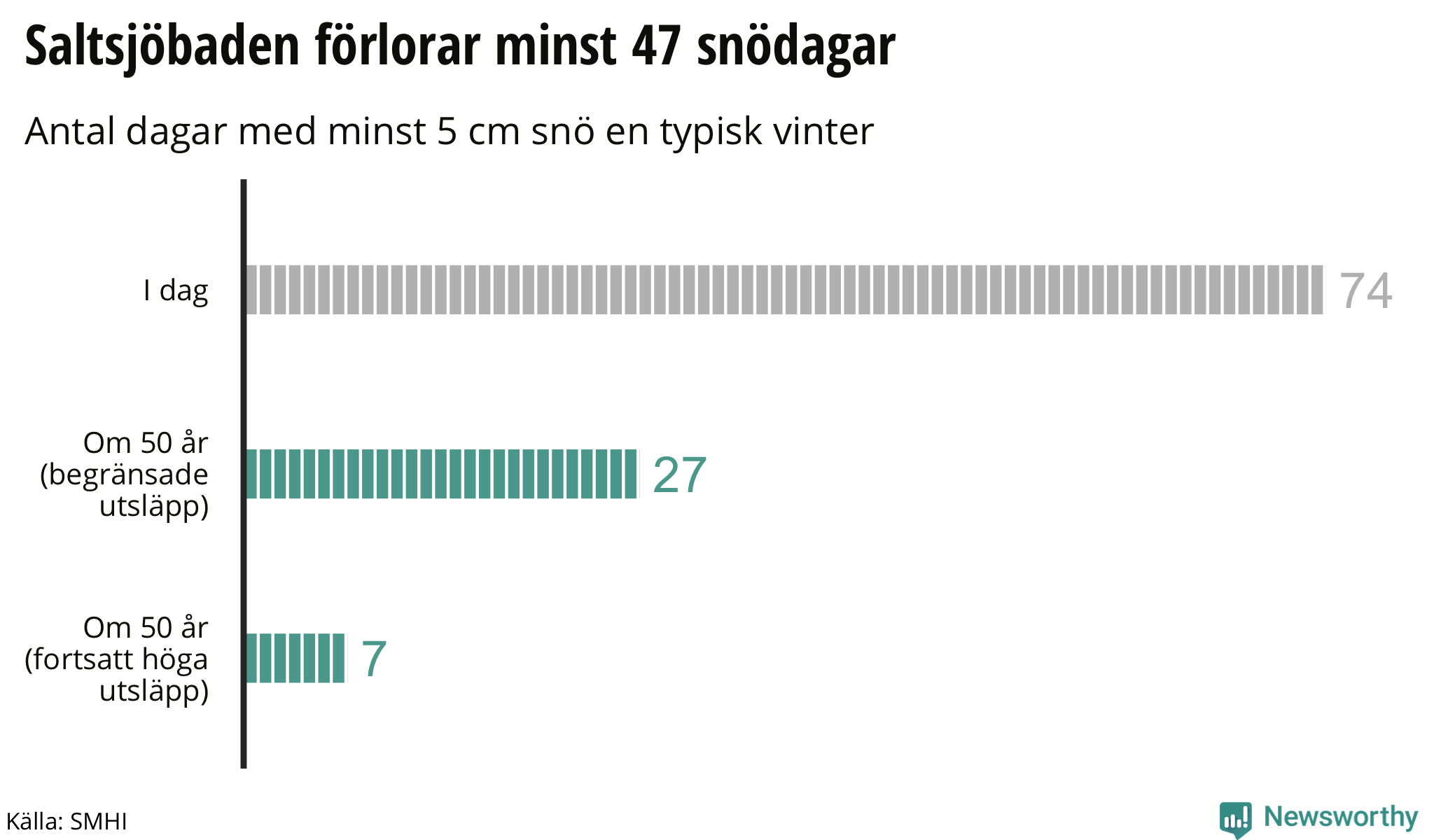 Under de senaste decennierna har de som bor i Saltsjöbaden kunnat räkna med i genomsnitt 74 dagar med minst fem centimeter snö, alltså ungefär två och en halv månader under en typisk vinter.