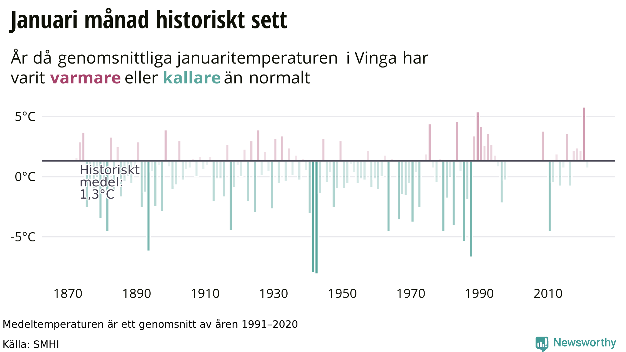 1 Vi drar gränsen för "betydligt" vid två graders differens från det historiska medeltalet.