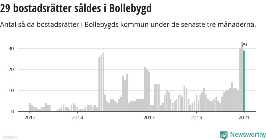 Mellan november och januari gjordes sammanlagt 29 affärer med bostadsrätter i Bollebygds kommun. Det kan jämföras med fyra vid motsvarande tid i fjol.