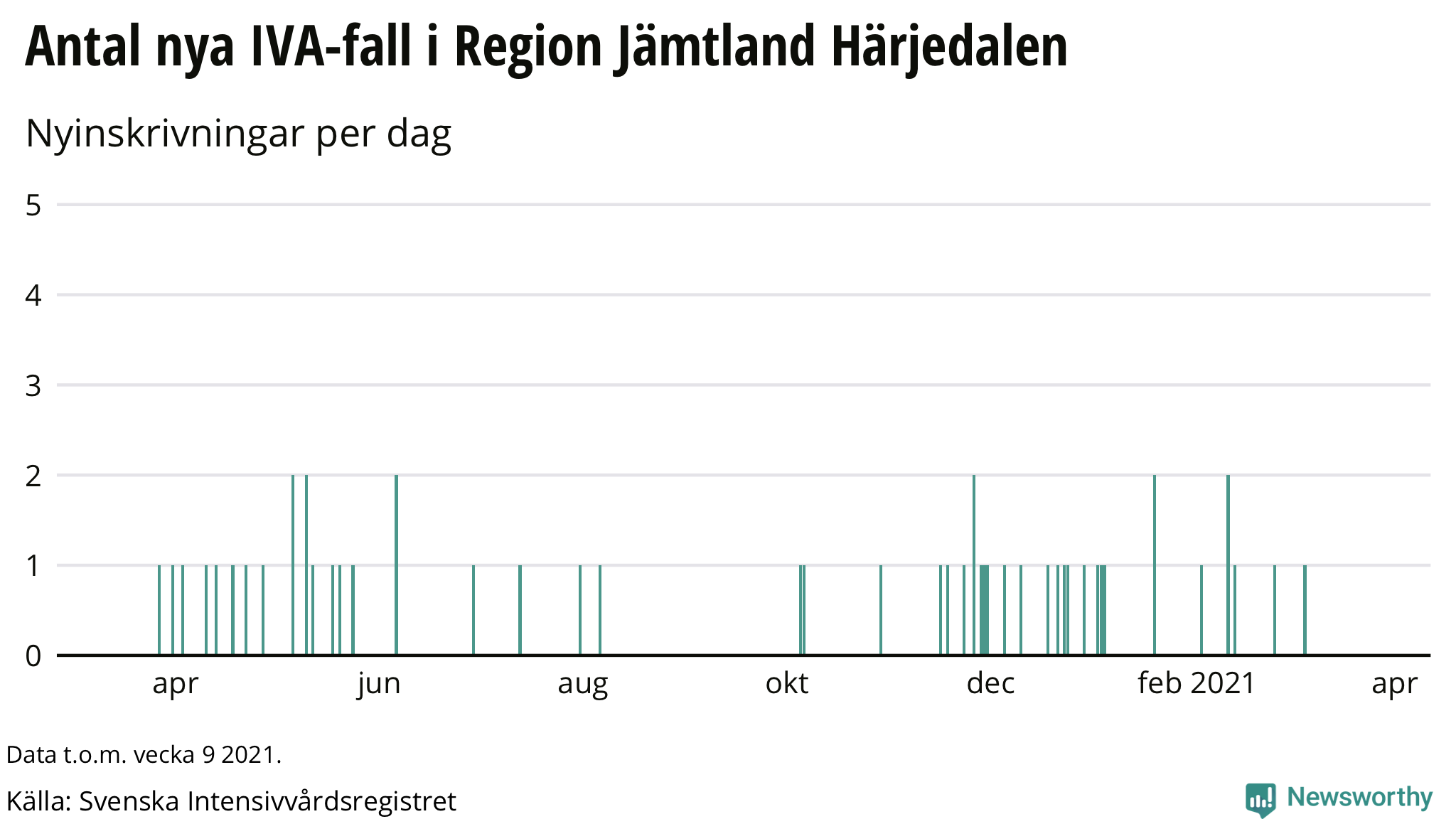 Bekräftade fall beror mycket på antalet tester som görs, något som varierat stort under året. Antalet nya patienter som skrivs in på intensivvårdsavdelningar ger en klarare bild av hur pressad sjukvården är i Jämtlands län och i andra delar av landet. Svenska Intensivvårdsregistret presenterar dessa siffror.