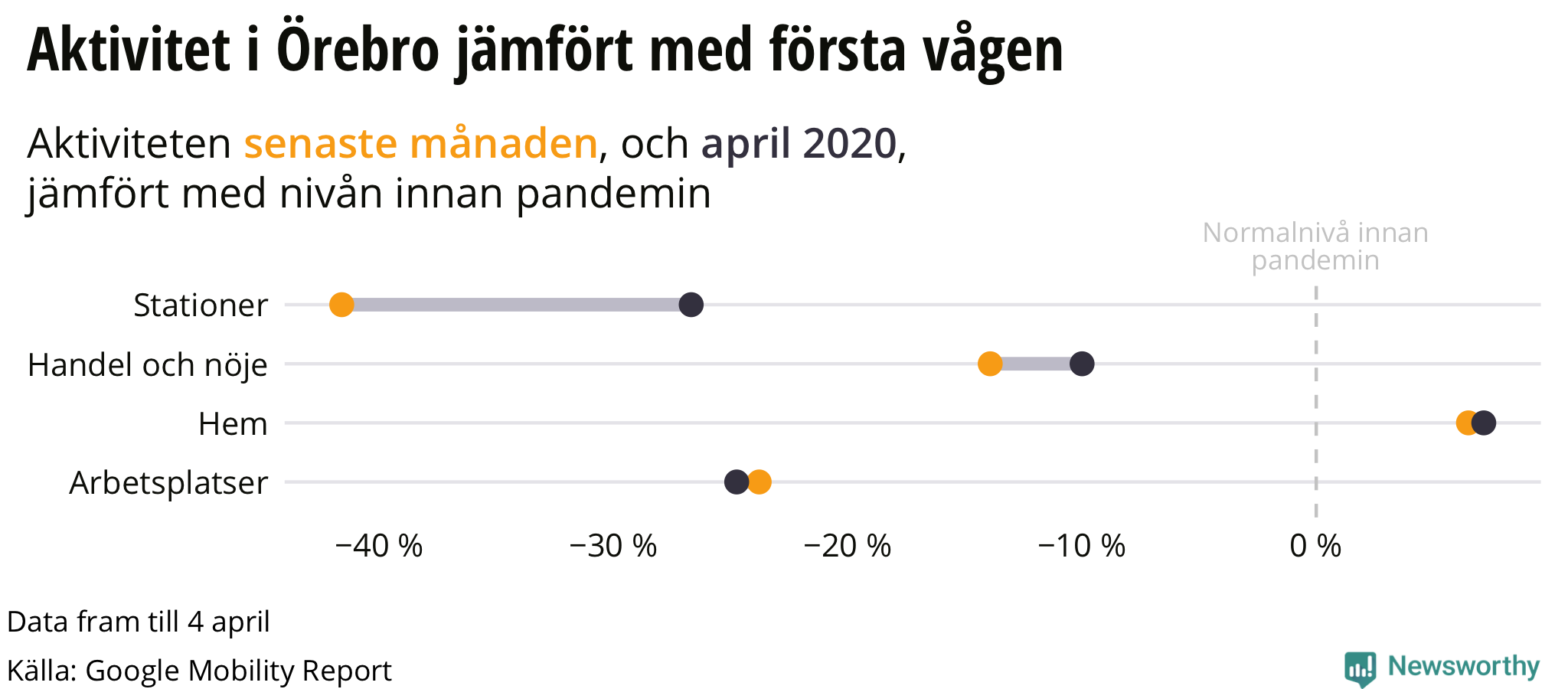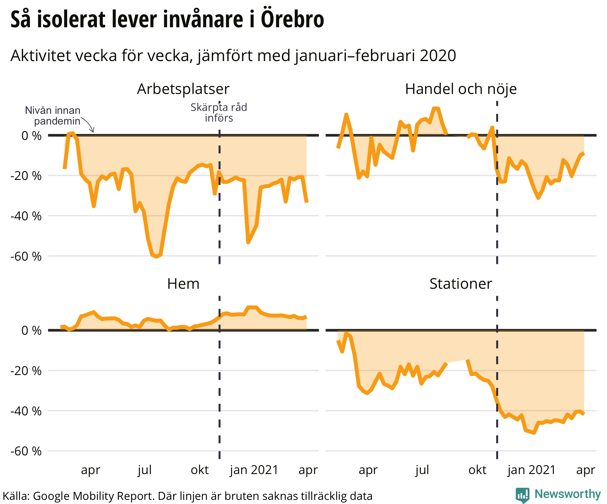 - Statistiken sträcker sig till och med 4 april. Vi har räknat ut ett medeltal för de föregående fyra veckorna, som vi jämför med medeltalet för april 2020, och med Googles egen referensperiod i januari och februari 2020.