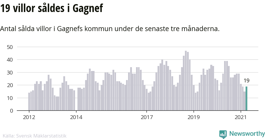 Mellan februari och april gjordes sammanlagt 19 affärer med villor i Gagnefs kommun. Det kan jämföras med 29 vid motsvarande tid i fjol.