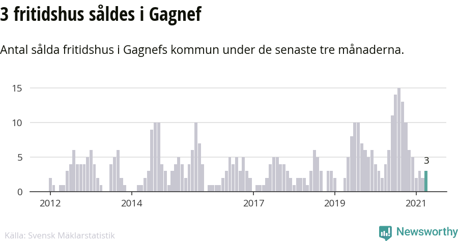 Mellan februari och april gjordes sammanlagt tre affärer med fritidshus i Gagnefs kommun. Det kan jämföras med fyra vid motsvarande tid i fjol.