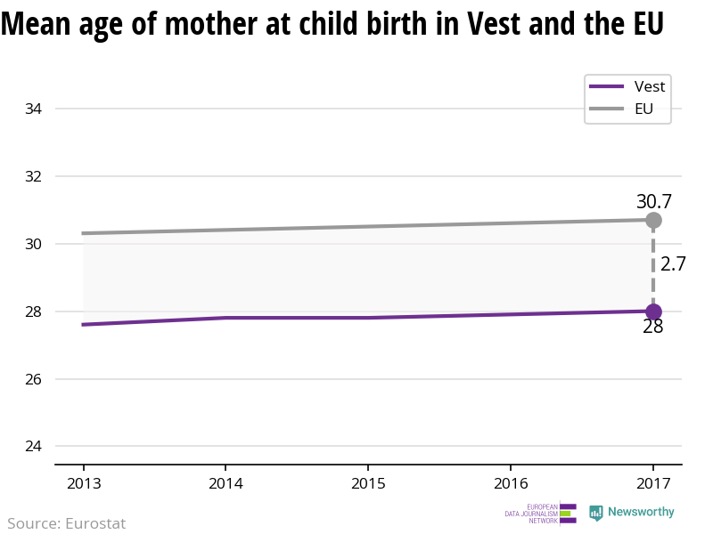 Women in Vest have children on average when they are 28 years old, which is younger than most regions in Europe.