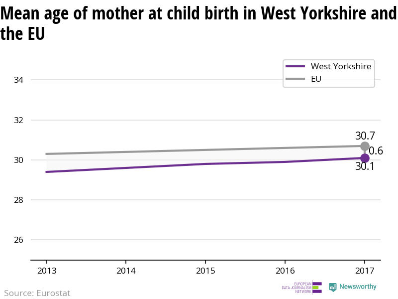 Women in West Yorkshire have children on average when they are 30.1 years old, which is younger than most regions in Europe.