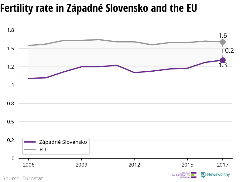 In this report we look closer at the fertility rates across Europe region by region. These are our findings for Západné Slovensko.
