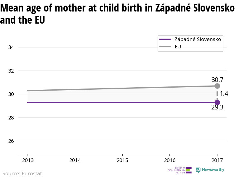 Women in Západné Slovensko have children on average when they are 29.3 years old, which is younger than most regions in Europe.