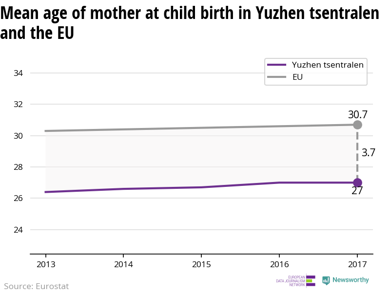 Women in Yuzhen tsentralen have children on average when they are 27 years old, which is younger than most regions in Europe.